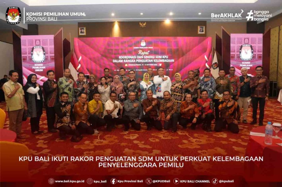 Denpasar, bali.kpu.go.id - Anggota KPU Provinsi Bali, Koordinator Divisi Sosialisasi, Pendidikan Pemilih, Partisipasi Masyarakat, dan SDM, I Gede John Darmawan, didampingi kepala bagian yang membidangi SDM, I Wayan Gede Buiartha mengikuti Rapat Koordinasi dan Sinergi SDM KPU dalam Rangka Penguatan Kelembagaan yang diselenggarakan di Pangkal Pinang, Kepulauan Bangka Belitung, Jumat (10/10/2025). Kegiatan ini diikuti oleh seluruh kepala divisi dan kepala bagian yang membidangi SDM dari KPU Provinsi se-Indonesia.