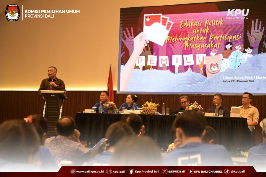 Denpasar, bali.kpu.go.id - Generasi muda, menurut Ketua KPU Bali I Dewa Agung Gede Lidartawan, perlu menata masa depan dengan pikiran yang lebih terbuka. Kesempatan belajar hingga merantau ke luar daerah harus dimanfaatkan sebaik mungkin, sebelum akhirnya kembali dengan membawa pengalaman berharga untuk membangun daerah. Ia menegaskan bahwa pemahaman yang baik, khususnya dalam dunia politik, akan membuat anak muda tidak mudah terpengaruh oleh hoaks maupun janji kosong. Hal tersebut disampaikannya saat menjadi narasumber dalam kegiatan Edukasi Politik untuk Meningkatkan Partisipasi Masyarakat, 7 Desember 2025.