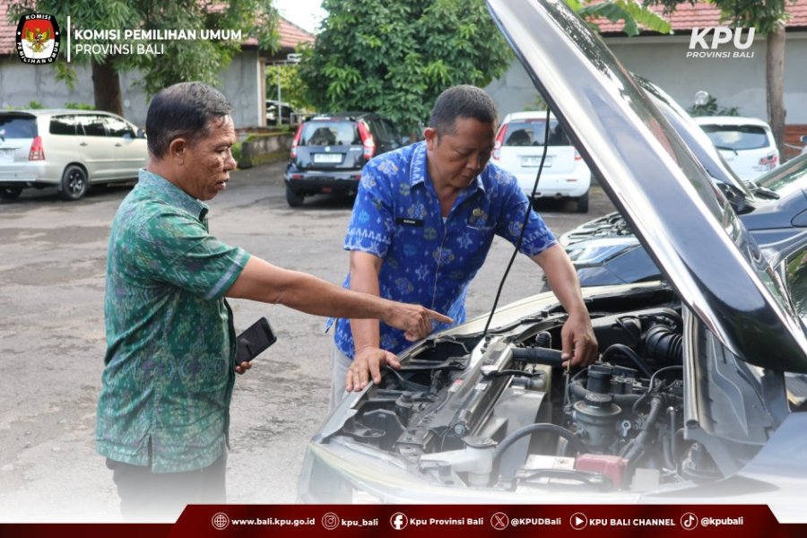 Pengecekan kendaraan dilakukan secara rutin setiap satu bulan sekali, dengan fokus pada kondisi fisik kendaraan, kelengkapan administrasi, serta fungsi teknis penunjang keselamatan, seperti mesin, sistem pengereman, lampu, dan perlengkapan lainnya. Kegiatan ini melibatkan jajaran sekretariat dan pegawai KPU Provinsi Bali yang menggunakan kendaraan dinas dalam pelaksanaan tugas sehari-hari.