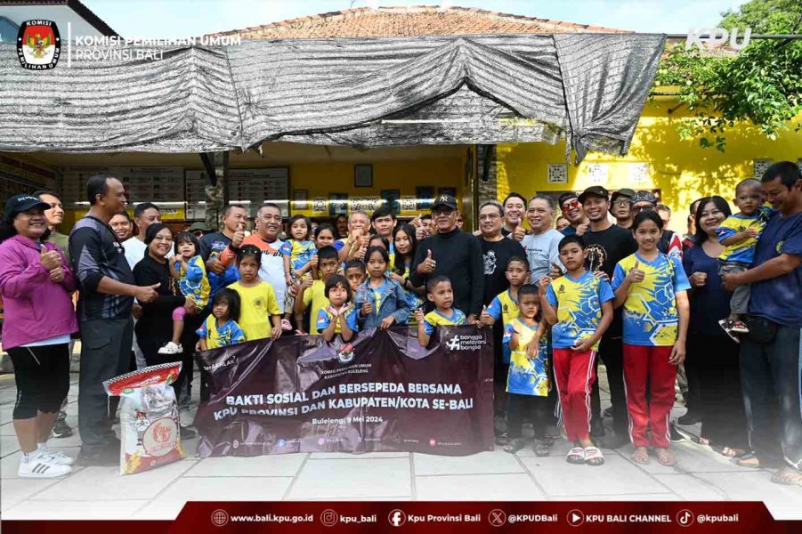 Denpasar, bali.kpu.go.id - Di awal kegiatan bersepeda bersama, Komisi Pemilihan Umum Provinsi Bali bersama KPU Kabupaten/Kota melaksanakan kegiatan sosial dengan memberikan santunan kepada anak-anak yatim. Kegiatan ini berlangsung pada Jumat (09/05) di Panti Asuhan Ganesha Sevanam, yang terletak di Jagaraga, Kecamatan Sawan, Kabupaten Buleleng.