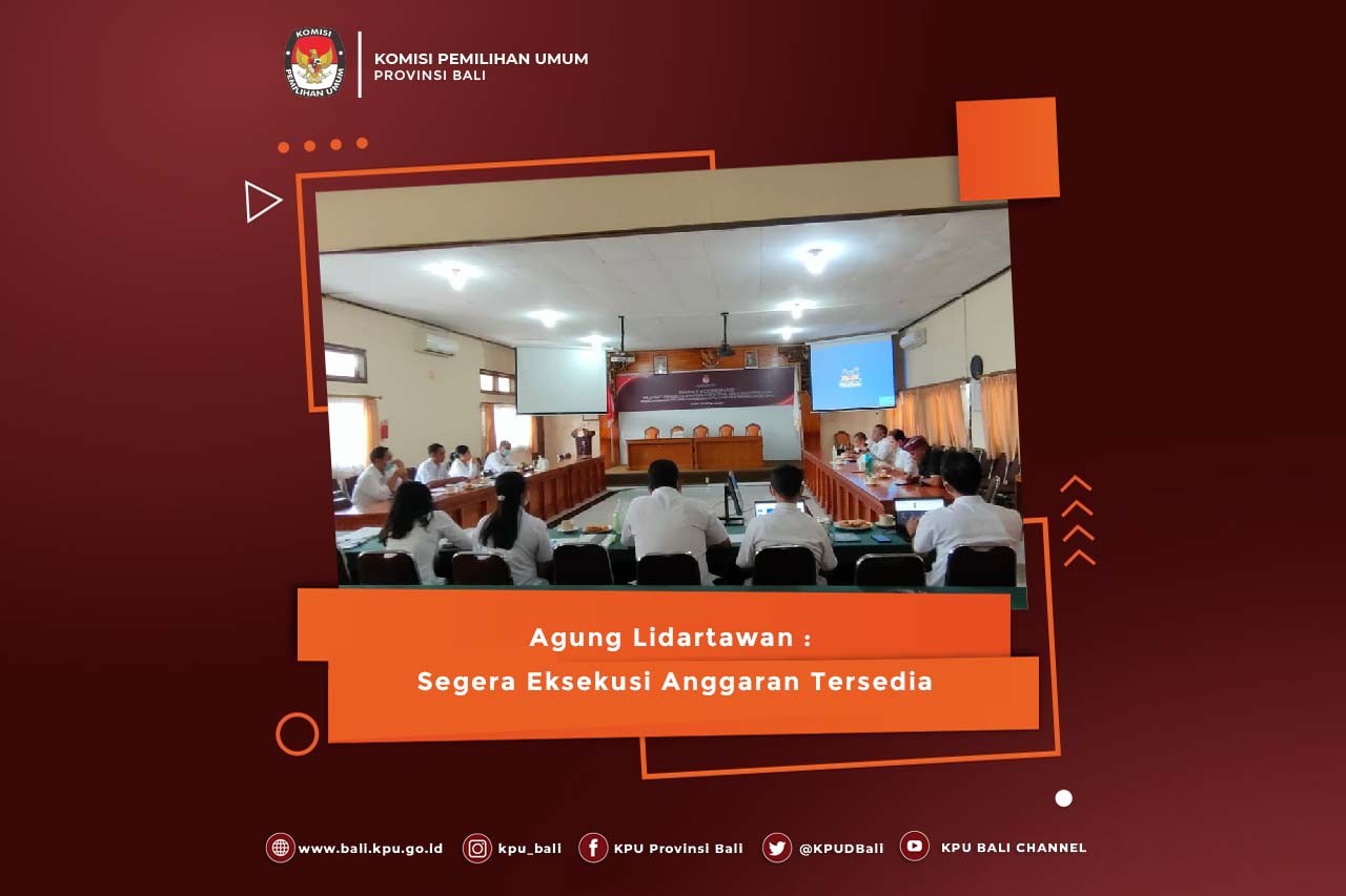 Denpasar, bali.kpu.go.id – Ditengah padatnya agenda kegiatan KPU Provinsi Bali, Senin (18/4/2022), dipimpin oleh Ketua KPU Provinsi Bali I Dewa Agung Gede Lidartawan berkesempatan menggelar rapat pleno rutin yang dihadiri oleh Anggota KPU, Sekretaris dan Para Pejabat struktural KPU Provinsi Bali, bertempat di Ruang Rapat Kantor KPU Provinsi Bali. Rapat pleno yang secara rutin dilaksanakan setiap minggunya tersebut, kali ini membahas terkait capaian realisasi anggaran serta evaluasi kegiatan dan rencana kerja yang akan dilaksanakan memasuki Minggu ke tiga di bulan April. Pada acara rapat pleno, masing - masing divisi dan bagian menyampaikan rancangan kegiatan yang akan dilaksanakan diantaranya mengenai kegiatan pelatihan pengamanan dan penanggulangan bencana, forum diskusi dalam rangka peringatan Hari Kartini, serta kegiatan sosialisasi, pendidikan pemilih dan parmas. Pada kesempatan tersebut Agung Lidartawan menegaskan agar masing - masing divisi dan bagian yang membidangi agar bekerja cepat dalam mengeksekusi anggaran yang tersedia termasuk hal - hal yang perlu dilakukan revisi anggaran, dalam upaya untuk mendukung kegiatan yang sudah direncanakan. (nv.red/Foto KPU Bali/ad/hupmas)