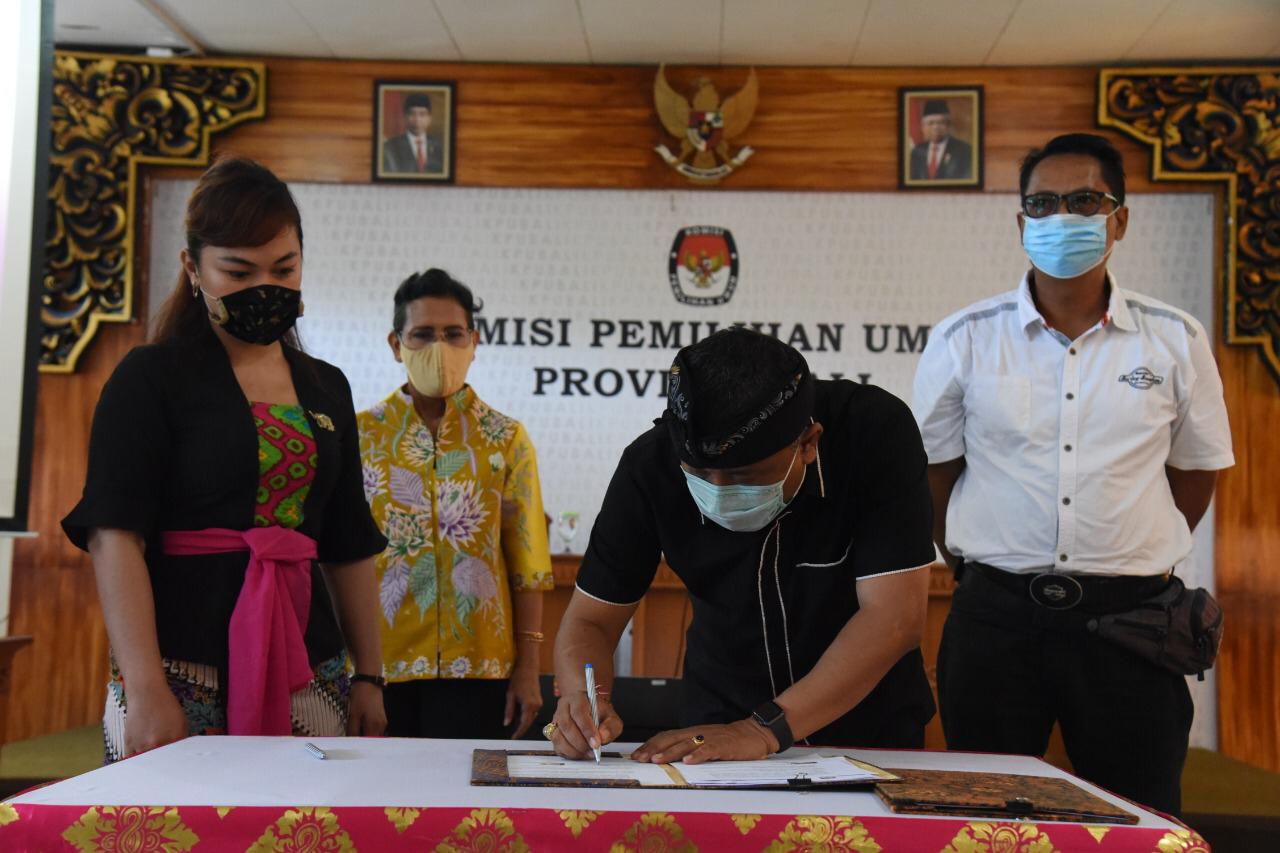 Denpasar, bali.kpu.go.id – Masa pendaftaran bakal pasangan calon (paslon) Gubernur dan Wakil Gubernur, Bupati dan Wakil Bupati dan/atau Wali Kota dan Wakil Wali Kota pada Pemilihan Serentak Tahun 2020 telah berakhir pada Pukul 24.00 tanggal 6 September 2020. (6/9/2020) Untuk Provinsi Bali, hingga akhir masa pendaftaran tercatat sebanyak 11 bakal paslon yang telah mendaftarkan diri ke KPU Kabupaten/Kota dengan rincian sebagai berikut ; Kota Denpasar sebanyak 2 bakal paslon atas nama I Gusti Ngurah Jaya Negara, S.E dan I Kadek Agus Arya Wibawa, SE.MM dengan partai pengusul dari PDI Perjuangan, PSI, Partai Hanura dan Partai Gerindra serta bakal paslon Gede Ngurah Ambara, SH dan Made Bagus Kertha Negara, S.Sos dengan partai pengusul dari Partai Golkar, Partai NasDem, Partai Demokrat. Di Kabupaten Tabanan terdaftar sebanyak 2 bakal paslon atas nama Dr. I Komang Gede Sanjaya, S.E., M.M. dan I Made Edi Wirawan, S.E. dengan partai pengusul dari PDI Perjungan serta bakal paslon Anak Agung Ngurah Panji Astika, S.T. dan I Dewa Nyoman Budiasa dengan partai pengusul Partai Golkar, Partai NasDem, Partai Demokrat. Kabupaten Jembrana terdaftar sebanyak 2 bakal paslon atas nama I Made Kembang Hartawan SE MM dan I Ketut Sugiasa SH Msi dengan partai pengusul dari PDI Perjuangan dan Hanura serta bakal paslon atas nama I Nengah Tamba, SH dan I Gede Ngurah Patriana Krisna ST MT dengan partai pegusul dari Partai Golkar, Partai Gerindra, Partai Demokrat, PKB, PPP. Kabupaten Bangli terdaftar sebanyak 2 bakal paslon atas nama Sang Nyoman Sedana Arta, SE dan I Wayan Diar, SST.PAR dengan partai pengusul dari PDI-Perjuangan, Partai Demokrat, Partai Gerindra, Partai Hanura, Partai PKPI serta bakal paslon I Made Subrata dan Ngakan Made Kutha Parwata dengan partai pengusul dari Partai Golkar, Partai Nasdem. Kabupaten Karangasem juga terdaftar sebanyak 2 bakal paslon atas nama I Gede Dana S.Pd.,M.Si dan Dr. I Wayan Artha Dipa, SH.,MH dengan partai pengusul dari PDI Perjuangan dan Partai Hanura serta bakal paslon atas nama I Gusti Ayu Mas Sumatri, S.Sos.MAP dan I Made Sukarena, SH dengan partai pengusul dari partai Partai Nasdem, Partai Golkar, Gerindra, Demokrat, Perindo,PKS. Sedangkan untuk Kabuapaten Badung, hingga akhir masa pendaftara hanya terdaftar sebanyak 1 bakal paslon yakni atas nama I Nyoman Giri Prasta, S.Sos. dan Drs. I Ketut Suiasa, SH. Dengan partai pengusul dari PDI Perjuangan, Partai Golkar dan Partai Demokrat. Penutupan dilakukan oleh jajaran komisioner disaksikan oleh bawaslu di masing-masing kabuapaten/kota dengan penyerahan Berita Acara penutupan pendaftaran bakal pasangan calon. (gb.red/Foto/KPU Bangli)