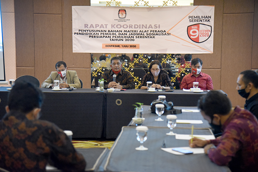 Denpasar, bali.kpu.go.id – Sekretaris Komsisi Pemilihan Umum Provinsi Bali Made Oka Purnama melantik pejabat struktural pada Sekretariat KPU Kota Denpasar, Kabupaten Tabanan dan Kabupaten Karangasem dalam acara Pengambilan Sumpah Jabatan dan Pelantikan Pejabat Administrator/Sekretaris KPU Kota Denpasar dan Pejabat Pengawas/Kasubbag pada Sekretariat KPU Kabupaten Karangasem, Kabupaten Tabanan dan Kota Denpasar. (09/07/2020) Acara yang dilaksanakan dengan mengdepankan proptokol Covid-19 tersebut dihadiri oleh Ketua, Anggota dan Pejabat Struktural KPU Provinsi Bali, Sekretaris Daerah Kota Denpasar, Kepala BKP SDM Kota Denpasar, Ketua KPU Kota Denpasar serta Ketua dan Sekretaris KPU Kabupaten Tabanan dan Karangasem. Berdasarkan Surat Keputusan Sekretaris Jenderal KPU RI, I Made Wirawan, S.E diangkat sebagai Sekretaris KPU Kota Denpasar. Sedangkan untuk jabatan Pengawas/Kepala Sub Bagian masing-masing dijabat oleh Putu Hanggasena Mahasidi, S.IP (Kasubbag Program dan Data Sekretariat KPU Kota Denpasar), I Gusti Gede Made Gustem Lasida, SE.,M.IP (Kasubbag Teknis Pemilu dan Hupmas Sekretariat KPU Kota Denpasar), Gusti Ayu Putu Kristiana Dewi, SH (Kasubbag Keuangan Umum dan Logistik Sekretariat KPU Kabupaten Tabanan) dan I Gede Wira Hadibrata Putra, SE (Kasubbag Keuangan Umum dan Logistik Sekretariat KPU Kabupaten Karangasem) Made Oka Purnama dalam arahannya menyampaikan kepada seluruh pejabat yang baru dilantik agar segera menyesuikan diri dengan lingkungan kerja serta meningkatkan pemahaman tugas, fungsi, kewenangan dan kewajiban. Oka Purnama juga berharap agar setiap pejabat agar dapat menjadi tauladan bagi bawahannya baik dari sisi displin, kinerja, etika dan integritas. Acara yang bertempat di Ruang rapat KPU Provinsi Bali tersebut dilanjutkan dengan arahan Ketua KPU Provinsi Bali I Dewa Agung Gede Lidartawan dan diakhiri dengan pemberian ucapan selamat oleh seluruh undangan yang hadir. (gb.red/Foto KPU Bali/bud/Hupmas)