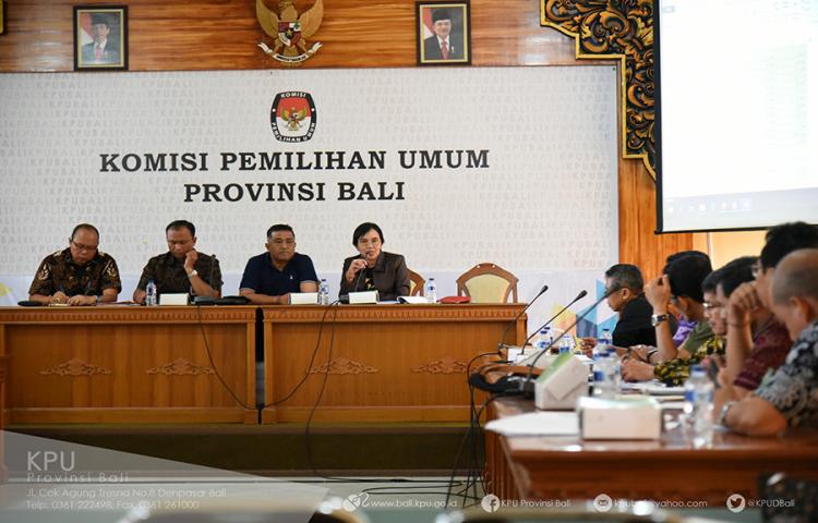 Rapat Pleno yang mengundang jajaran Forum Koordinasi Pimpinan Daerah Provinsi Bali, Bawaslu Provinsi Bali beserta jajarannya di tingkat Kabupaten/Kota, Ketua dan Divisi Teknis KPU Kabupaten/Kota se-Bali, Instansi terkait serta Saksi dari seluruh peserta Pemilu (Pasangan Calon Presiden dan Wakil Presiden, Partai Politik dan Calon Perseorangan Anggota DPD) dilaksanakan selama 2 hari di Prime Plaza Hotel Sanur.