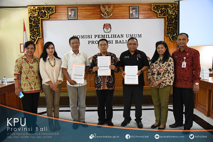 Denpasar, bali.kpu.go.id – Setelah melaksanakan monitoring bersama untuk memastikan pemasangan Alat Peraga Kampanye (APK) Pemilihan Gubernur dan Wakil Gubernur Bali (Pilgub Bali) Tahun 2018 telah sesuai dengan peraturan perundangan yang berlaku serta memenuhi asas keberimbangan kepada seluruh Pasangan Calon, Komisi Pemilihan Umum Provinsi Bali (KPU Bali) kembali mengundang Tim Pasangan Calon untuk melakukan reviu dan tindak lanjut atas kondisi beberapa APK yang mengalami kerusakan. (12/04/18) Ketua KPU Bali Dewa Raka Sandi saat membuka acara menyampaikan rasa terima kasihnya kepada masing-masing Tim Kampanye dan LO Pasangan Calon karena telah bekerjasama dengan baik sehingga situasi dapat berjalan kondusif hingga saat ini. Anggota KPU Bali Divisi SDM dan Partisipasi Masyarakat Ni Wayan Widhiasthini mengatakan, berdasarkan hasil monitoring di 6 (enam) Kabupaten/Kota (Kota Denpasar, Badung, Tabanan, Buleleng, Bangli, Klungkung dan Gianyar) yang dilaksanakan pada tanggal 5 sampai dengan 6 April 2018 yang lalu, ditemukan beberapa APK sudah dalam kondisi rusak/hilang. Melihat kondisi tersebut, Widhiasthini meminta kepada masing-masing Tim Pasangan Calon agar menindaklanjuti dengan melakukan perbaikan atau penggantian terhadap APK yang mengalami kerusakan. Menyikapi hal tersebut, masing-masing Tim Pasangan Calon menyatakan kesiapannya untuk memelihara, memperbaiki dan mengganti APK yang terdiri dari Baliho, Spanduk dan T-Banner tersebut. Mereka berharap agar koordinasi dan komunikasi yang baik antara KPU Bali, Bawaslu Bali dan Tim Pasangan Calon tetap terjalin demi kesuksesan pelaksanaan Pilgub dan kedamaian Bali. Pada kesempatan tersebut juga disepakti bersama mengenai penentuan Moderator, Tim Perumus serta Jumlah Pendukung dalam rangakaian acara Debat Terbuka Pilgub Bali yang akan dilaksanakan sebanyak 3 (tiga) kali pada tanggal 28 April 2018, 26 Mei 2018 dan 22 April 2018. (gb.red/Foto KPU Bali/gb/Hupmas)