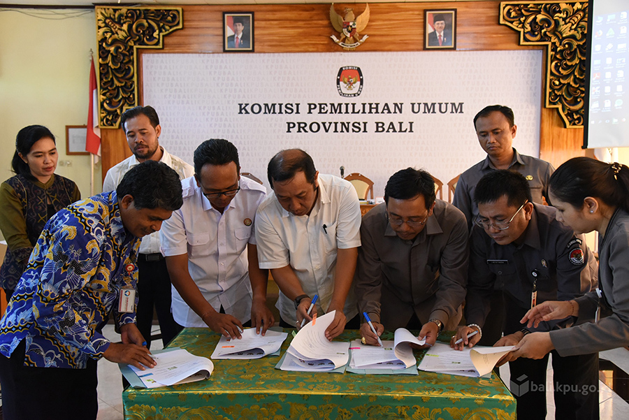 Denpasar, bali.kpu.go.id– Komisi Pemilihan Umum Provinsi Bali (KPU Bali) bersama dengan Komisi Penyiaran Indonesia Daerah Bali (KPID Bali), Komisi Informasi Provinsi Bali (KPI Bali), Badan Pengawas Pemilu Provinsi Bali (Bawaslu Bali) dan Ombudsman Republik Indonesia Perwakilan Bali (ORI Bali) menandatangani Keputusan Bersama tentang Pengawasan Pemberitaan, Penyiaran dan Iklan Kampanye Pemilihan Gubernur dan Wakil Gubernur Bali (Pilgub Bali), serta Pemilihan Bupati dan Wakil Bupati Klungkung dan Gianyar Tahun 2018. (19/03/18) Perjanjian Kerjasama ini nantinya akan dijadikan sebagai acuan bagi semua pihak yang terkait untuk mengawal dan menyukseskan pelaksanaan Pilgub Bali terutama dalam tahapan kampanye, terang Ketua KPU Bali Dewa Raka Sandi dalam sambutannya. Raka Sandi juga menambahkan bahwa dalam waktu dekat KPU Bali akan melaksanakan sosialisasi yang lebih komprehensif mengenai Perjanjian Kerjasama ini dengan mengundang tim kampanye dari masing-masing pasangan calon serta pihak-pihak terkait lainnya. Dengan adanya Perjanjian Kerjasama ini Raka Sandi berharap kedepan secara efektif substansi meupun kewengan dari masing-masing lembaga bersama-sama kita dapat sosialisasikan dan tegakkan kepada masyarakat dalam pelaksanaan Pilgub saat ini. Ni Wayan Widhiasthini selaku Anggota KPU Bali yang membidangi kampanye mengatakan bahwa Perjanjian Kerjasama mengenai pengawasan pemberitaan, penyiaran dan iklan kampanye saat ini merupakan turunan dari Memorandum of Understanding (MOU) antara Komisi Pemilihan Umum Provinsi Bali bersama degan Ombudsaman Republik Indoensia (ORI)tentang Pengawasan Bersama Pelaksanaan Pemilihan Gubernur dan Wakil Gubernur Bali serta Pemilihan Bupati dan Wakil Bupati Klungkung dan Gianyar Tahun 2018 yang dilaksanakan pada saat itu juga. Widhiasthini menjelaskan bahwa Perjanjian Kerjsama ini dilakukan mengingat keterbatasan wewenang KPU Bali dalam beberapa hal sehingga harus disinkronkan dalam mengantisipasi segala macam masalah yang mungkin terjadi selama pelaksanaan kampanye. Dalam Perjanjian Kerjsama yang ditandatangani oleh masing-masing Ketua dari lembaga terkait tersebut juga dijelaskan mengenai gugus tugas dari masing-masing lembaga berkaitan dengan pengawasan pemberitaan, penyyiaran dan iklan kampanye dalam Pilgub Bali yang akan dilaksanakan selama 14 hari sejak tanggal 10 Juni sampai dengan 23 Juni 2018 mendatang. (gb.red/Foto KPU Bali/gb/Hupmas)
