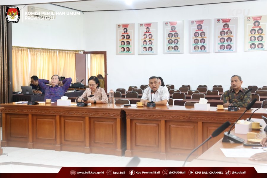 Komisi Pemilihan Umum Provinsi Bali menggelar Rapat Koordinasi Pelaksanaan Kegiatan Pasca Pemilu dan Pemilihan pada Selasa (12/8/2025) bertempat di Ruang Rapat Lantai 2 Kantor KPU Provinsi Bali. Kegiatan ini dihadiri oleh Ketua dan Anggota KPU Provinsi Bali, Anggota KPU Kabupaten/Kota se-Bali Divisi Teknis Penyelenggaraan, Kepala Bagian Teknis Penyelenggaraan Pemilu, Partisipasi dan Hubungan Masyarakat, Hukum dan SDM, Kasubbag Teknis KPU Kabupaten/Kota se-Bali, serta staf pelaksana KPU Provinsi Bali.