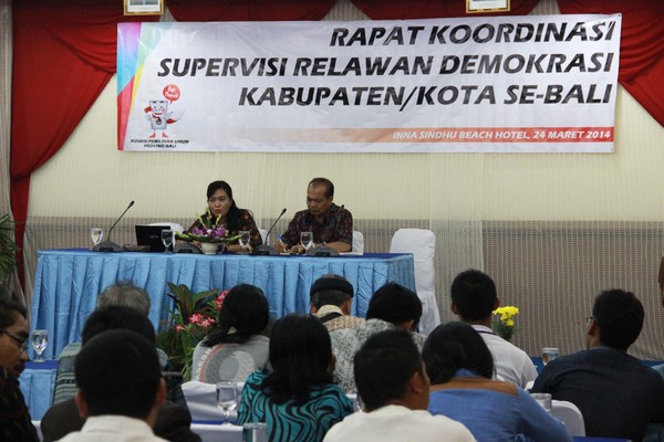 Komisi Pemilihan Provinsi Bali melaksanakan acara Bimbingan Teknis Pemantau Pemilu dalam Pemilu tahun 2014. Acara yag dilaksanakan di Hotel Grand Santhi tersebut dihadiri oleh Empat lembaga pemantau yang telah lolos verifikasi administrasi yaitu Tim Pemantau Independen Universitas Pendidikan Ganesha, BEM-PM Universitas Udayana, GMNI Cabang Denpasar dan KMHDI.