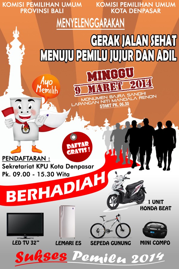 Semarapura, Deklarasi Pemilu Damai dan Kirab/Karnaval yang dibarengi dengan Pengibaran bendera Partai Politik Peserta Pemilu berlangsung dengan rasa kekeluargaan. Kegiatan yang dilaksanakan di Depan Kantor Bupati Klungkung dihadiri oleh Plth Bupati Klungkung yang juga Wakil Bupati Made Kasta, Ketua DPRD Kabupaten Klungkung, Muspida, Instansi terkait dan Partai Politik, Sabtu, 15 Maret 2014. 12 partai politik tampak hadir dengan mengajak simpatisannya untuk ikut berperan dalam menaiikan bendera partai politik secara bersamaan dengan diiringi oleh Gong Bale Ganjur (sekaa gong Br. Losan). Plth Bupati Klungkung dalam sambutanya menyampaikan Partai Politik yang merupakan peserta Pemilu agar menjalankan kegiatan kampanye dengan rasa saling memiliki, penuh dengan kedamaian dan kekeluargaan dalam melaksanakan Pemilihan Umum. Plth Bupati Klungkung juga sempat mengajak seluruh hadirin untuk mengheningkan pikiran sejenak dengan berdoa agar Pemilu di Kabupaten Klungkung berjalan Damai dan melahirkan pemimpin yang amanah, dan bisa mengemban aspirasi masyarakat dan membawa kesejahteraan dimasa depan. Sedangkan Ketua KPU Kabupaten Klungkung I Made Kariada dalam pesanya menyampaikan bahwa Deklarasi Pemilu Damai dan Kirab/Karnaval berlangsung secara nasional di seluruh Indonesia secara bersamaan. Tujuan kegiatan Kirab/Karnaval ini adalah mensosialisasikan pelaksanaan Pemilu Anggota DPR, DPD dan DPRD serta Pemilu Presiden. Selain itu kegiatan ini juga mengenalkan peserta Pemilu yaitu Partai Politik kepada masyarakat sehingga bisa lebih dekat dengan kontsituennya. Maka dari itu KPU Kabupaten Klungkung mengajak Partai Politik untuk ikut serta berpartisipasi dengan anggota serta atribut masing – masing yang dipasang dimobil. Tampak semua Parpol ikut hadir dalam deklarasi damai dan pengibaran bendera bersama yaitu Partai Nasdem, PKB, PKS, PDI Perjuangan, Partai Golkar, Partai Gerindra, Partai Demokrat, PAN, PPP, Partai Hanura, PBB, PKP Indonesia. Deklarasi Pemilu Damai 2014 " Pemilu Berintegritas" yang dipandu oleh Ketua KPU Kabupaten Klungkung dan diikuti oleh seluruh Partai Politik menyatakan : Kami Partai Politik Peserta pemilu Tahun 2014 dengan semangat Persatuan dan Persaudaraan, menyatakan siap menciptakan Pemilu yang Aman, Tertib, Damai, Berkualitas, dan Berintegritas demi Terwujudnya Kemajuan dan Kesejahteraan Bangsa serta Terpeliharanya Keutuhan Negara Kesatuan Republik Indonesia (NKRI). Kami Partai Politik Peserta pemilu Tahun 2014 menyatakan siap untuk mewujudkan Pemilu yang jujur dan Adil demi menjunjung Nilai – Nilai Demokratisasi Indonesia Berdasarkan Pancasila dan undang Undang Dasar 1945. Untuk Rute yang dituju dalam Karnaval/Kirab tersebut yaitu start di Pintu Barat Lapangan Puputan Klungkung, ke Utara menuju Jalan Untung Surapati ke barat menuju simpang Lima ke Utara menuju Jalan Ngurah Rai ke Pertigaan Besang ke Selatan menuju jalan Gajah Mada, sampai catus pata ke Timur menuju Tukad Unda, Paksebali, Sampalan, Gunaksa di Perempatan Tihinga Adi ke Selatan Menuju Jalan Bay Pass Ida Bagus Mantra ke perempatan Klotok ke Barat sampai simpang empat Tegal Besar ke Utara menuju Perempatan Banjarangkan ke Timur menuju Tukad Bubuh/Goa Jepang ketimur menuju Perempatan Takmung, ke Utara menuju Simpang Lima dan Kembali Ke Lapangan Puputan Klungkung. Kegiatan diakhiri dengan Pelepasan Burung Dara oleh Plth. Bupati Klungkung, Muspida dan Pimpinan Partai Politik yang menandakan Kampanye/Pemilu Damai.