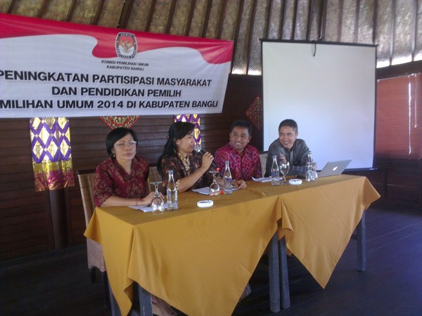 Bertempat di Rama Sitta Room Grand Inna Bali Beach Hotel,sebanyak 40 orang Komisioner KPU Kabupaten/Kota Terpilih Dilantik oleh Ketua KPU Provinsi Bali, I Dewa kade Wiarsa Raka Sandi, ST. Acara yang dilaksanakan pada hari Rabu, 16 Oktober 2013 ini mengundang Gubernur Bali, Ketua DPRD Bali, Kapolda Bali, Bawaslu Bali, Bupati dan Walikota se-Bali serta Jajaran SKPD Provinsi Bali. Dari 40 orang Komisioner yang dilantik, 12 diantaranya adalah Incumbent yakni, Ni Made Bakti, I Gede Jhon Darmawan (Denpasar); AA Gede Raka Nakula (Badung); Dewa Agung Lidartawan, Ni Putu Ariyanti Suningsih (Bangli); Ni Luh Putu Sri Widyastini (Buleleng); Ni Luh Darayoni, I Ketut Narta (Tabanan); Diana Devi, I Made Arnawa (Karangasem); AA Gede Putra, Ngakan Oka Sudaryana (Gianyar). Pada kesempatan tersebut, seluruh Anggota KPU Kabupaten/Kota yang baru dilantik menandatangani Pakta Integritas yang isinya sebagai berikut : Menyelenggarakan Pemilu berdasarkan asas langsung, umum, bebas, rahasia, jujur dan adil secara professional, efektif dan efisien. Memenuhi hak konstitusional warganegara untuk dapat menggunakan hak pilihnya secara baik dan menjaga suara pemilih sebagaimana diatur dalam undang – undang. Memperlakukan secara adil, imparsial dan non-partisan kepada peserta Pemilu dan para pihak yang memiliki preferensi politik tertentu tanpa terkecuali. Membuka partisipasi dan akses publik atas perumusan kebijakan, proses penyelenggaraan Pemilu dan berbagai data serta informasi yang terkait dengan Pemilu sesuai peraturan perundang – undangan. Menolak pemberian, permintaan dan perjanjian dalam bentuk apapun baik langsung atau tidak langsung yang member harapan yang menyimpang dari prinsip – prinsip Pemilu yang jujur dan adil bagi peserta Pemilu, calon serta pihak – pihak yang memiliki preferensi politik tertentu. Mencegah dan tidak melakukan praktek korupsi, kolusi dan nepotisme. Mencegah terjadinya pelanggaran Pemilu oleh peserta, simpatisan, masyarakat, sesuai dengan peraturan perundang – undangan yang berlaku. Melakukan pencegahan dan penegakan kode etik terhadap pelanggaran setiap tahapan penyelenggaraan Pemilu. Bekerjasama dengan berbagai pihak, baik dari dalam maupun luar negeri untuk mensukseskan dan meningkatkan kualitas Pemilu, dengan tetap menjunjung tinggi prinsip kemandirian, imparsialitas, non partisan dan adil. Mengambil kebijakan – kebijakan KPU secara kolektif dalam rapat pleno. Bekerja sampai pada berakhirnya mandat jabatan dengan sepenuh waktu, jujur dan adil. Komisioner yang telah dilantik akan mengikuti Orientasi dan Pelatihan selama empat hari dari tanggal 16 sampai dengan 19 Oktober 2013 yang bertempat di Baris Room Bali Beach.
