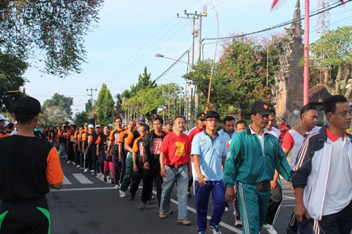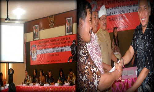 Membeludak di Denpasar, Semarak di Seluruh Bali DENPASAR – Pada Minggu (7/4), KPU menggelar gerak jalan sehat di seluruh Indonesia. Di Bali, gerak jalan sehat untuk mensosialisasikan Pemilu Jujur dan Adil dilaksanakan di Denpasar, dan kabupaten seluruh Bali. Peserta jalan sehat di Denpasar yang digelar KPU Provinsi Bali bersama KPU Kota Denpasar membeludak. Sementara di delapan kabupaten jalan sehat berlangsung semarak. Gerak jalan sehat di Denpasar digelar di kawasan Renon. Start di depan Kantor KPU Kota Denpasar, menyusuri Jalan Raya Puputan, melewati Bank Indonesia, lalu melewati Jalan Cok Agung Tresna. Di depan Kantor KPU Provinsi Bali di Jalan Cok Agung Tresna, peserta jalan sehat mengumpulkan tiket door price. Peserta kemudian menuju garis finish di KPU Kota Denpasar. Selain diikuti penyelenggara Pemilu, mulai anggota KPU, anggota Panwaslu, PPK, PPS dan KPPS, gerak jalan sehat itu juga diikuti pimpinan lembaga Negara di Bali, pimpinan SKPD Provinsi Bali dan pimpinan partai politik peserta Pemilu Legislatif 2014. Dalam perjalanan peserta gerak jalan sehat terus berseru "KPU SIAP DALAM MENYELENGGARAKAN PILEG YANG AKAN DISELENGGARAKAN TANGGAL 9 APRIL 2014 NANTI". Ketua KPU Bali I Ketut Sukawati Lanang Putra Perbawa, SH. MH., mengatakan, gerak jalan sehat ini untuk mensosialisasikan Pemilu Legislatif yang akan diselenggarakan pada9 April 2014. Sekaligus mensosialisasikan Pilgub Bali yang akan dilaksanakan pada 15 Mei 2013. "Sosialisasi Pemilu jujur dan adil bukan kewenangan KPU saja,tapi juga kewajiban masyarakat umum," kata Lanang. Lanang terus memberikan semangat kepada para peserta gerak jalan sehat. Dalam sambutannya ketika tiba di garis finish, Lanang Perbawa mengatakan, gerak jalan sehat tersebut untuk mensosialisasikan Pileg tahun 2014 nanti, sehingga dapat diwujudkan Pemilu yang jujur dan adil. Setelah Sambutan dari Ketua KPU Provinsi I Ketut Sukawati Lanang Putra Perbawa, acara dilanjutkan dengan menaikkan dan mengibarkan bendera masing-masing parpol sebagai simbol bahwa kampanye Pemilu Legislatif 2014telah berjalan. Acara dilanjutkan dengan pelepasan burung dara oleh ketua masing-masing parpol yang didampingi oleh Ketua KPU Provinsi Bali, Ketua KPU Kota Denpasar, dan Ketua Panwaslu Provinsi Bali. Pelepasan burung dara ini dilaksanakan sebagai simbol bahwa semua parpol bersepakat untuk meksanakan Pemilu secara damai.Gerak jalan sehat diakhiri dengan pengundian nomot tiket door prize diiringi hiburan musik dangdut. Sementara pada saat bersamaan, di delapan kabupaten juga digelar gerak jalan sehat. Kegiatan tersebut berlangsung semarak. Di beberapa kabupaten bahkan gerak jalan sehat yang digelar KPU setempat dilepas bupati, dan diikuti pimpinan instansi di kabupaten tersebut seperti Kapolres, Dandim dan pimpinan partai politik. Acara bertambah semarak karena diisi dengan door prize dan hiburan. Menurut anggota KPU Provinsi Bali, Ketut Udi Prayudi berharap, dengan kegiatan gerak jalan sehat tersebut bisa menumbuhkan kembali kepercayaan masyarakat untuk ikut setiap event Pemilu. "Dengan demikian, nanti pada hari pencoblosan masyarakat akan berbondong-bondong untuk memberikan suaranya. Partisipasi masyarakat dalam Pemilu diharapkan semakin tinggi," harapnya. KPU Provinsi Bali menargetkan partisipasi masyarakat untuk memilih dalam Pilgub Bali 2013 sebesar 75 persen.(*)