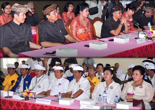Hadir dalam acara tersebut Ketua Panwaslu Bali, Made Wena, anggota Panwaslu Bali, Ketut Sunadra, anggota KPID Bali, Nyoman Mardika, perwakilan dari Komisi Informasi (KI) Bali, Polda Bali, Korem 163/Wirasatya, Mayor Kav. Nanang S, Kesmbangpol Provinsi Bali, Sang Putu Ruji Satpol PP Provinsi Bali, Hidayat, serta pimpinan partai politik. Sementara Ketua KPU Provinsi Bali, Ketut Sukawati Lanang Putra Perbawa didampingi Ketua Pokja Penyusunan Daerah Pemilihan (Dapil) KPU Provinsi Bali, Ni Putu Ayu Winariati, dan Sekretaris KPU Provinsi Bali, Putu Arya Gunawan.