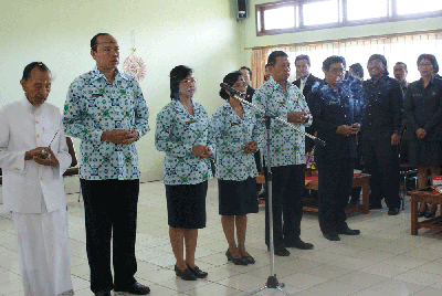 Dipimpin oleh Sekretaris KPU Provinsi Bali, para pejabat baru tersebut mengucapkan sumpah/janji dengan bimbingan rohaniawan sesuai dengan keyakinan masing-masing. Setelah penandatangan Berita Acara pengambilan Sumpah/Janji, Ketua KPU dan Sekretaris KPU Provinsi Bali memberikan "pembekalan" kepada mereka yang baru saja dilantik.