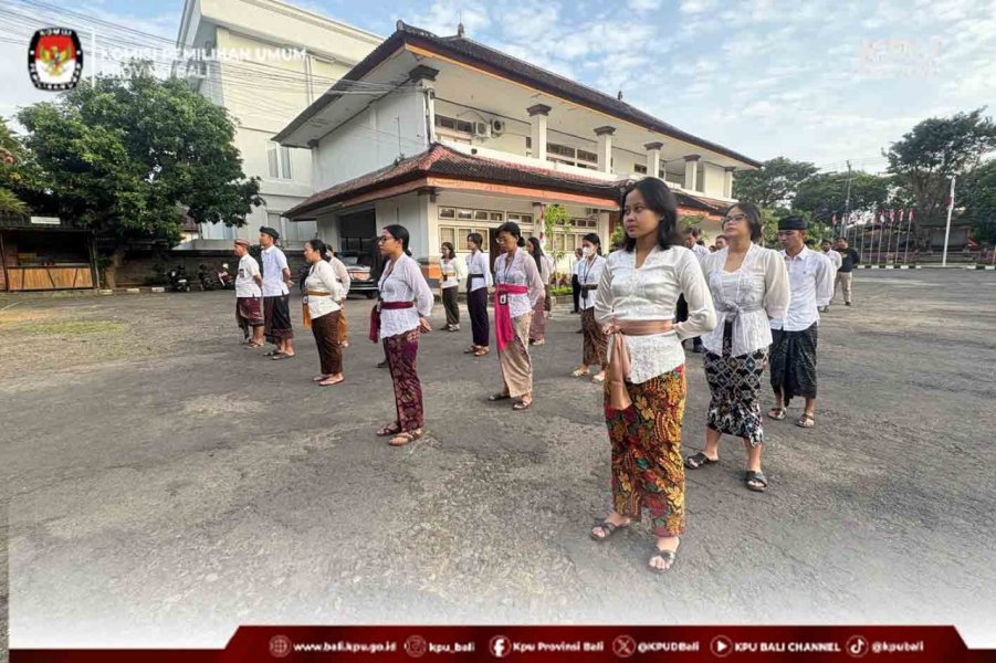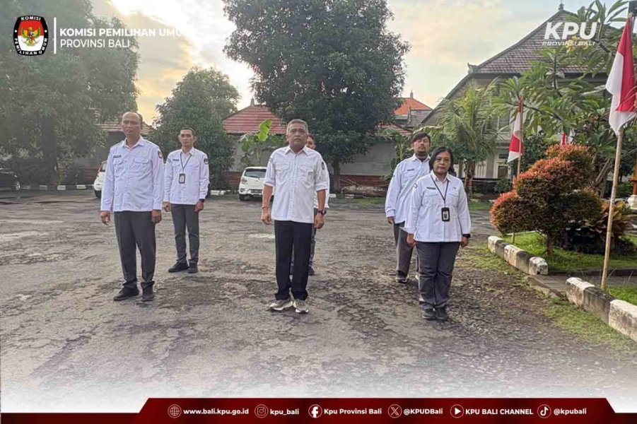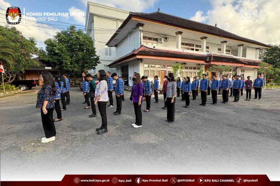 Apel pagi menjadi bagian dari rutinitas KPU Bali dalam membangun kedisiplinan dan komunikasi internal yang efektif, sekaligus menjadi sarana penyampaian informasi dan arahan kerja.