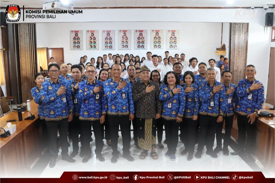 Denpasar, bali.kpu.go.id - Komisi Pemilihan Umum Provinsi Bali melaksanakan kegiatan pengenalan struktur organisasi dan Sekretariat KPU Provinsi Bali kepada 9 (sembilan ) Calon Pegawai Negeri Sipil (CPNS) penempatan Sekretariat KPU Provinsi Bali Senin, 2 Juni 2025. Kegiatan berlangsung di Rumah Pintar Pemilu dan dibuka secara resmi oleh Sekretaris KPU Provinsi Bali, I Made Oka Purnama. Dalam sambutannya, beliau memperkenalkan jajaran Anggota, Sekretaris, serta pejabat struktural dan fungsional yang tergabung dalam organisasi KPU Provinsi Bali. Tujuan dari kegiatan ini adalah memberikan pemahaman awal mengenai struktur organisasi, tugas, dan fungsi masing-masing bagian kepada para CPNS agar mereka dapat beradaptasi dengan cepat dan menjalankan tugasnya secara optimal. Acara tersebut juga dihadiri oleh seluruh pejabat struktural dan fungsional KPU Provinsi Bali. Setelah pengenalan organisasi, kegiatan dilanjutkan dengan sesi perkenalan diri dari masing-masing CPNS, yang kemudian disambut hangat dengan ucapan selamat dan dukungan dari seluruh jajaran KPU Provinsi Bali. Dalam kegiatan ini, diharapkan para CPNS dapat lebih siap dan bersemangat dalam menjalankan tugasnya sebagai bagian dari keluarga besar KPU Provinsi Bali. Komisi Pemilihan Umum Provinsi Bali melaksanakan kegiatan pengenalan struktur organisasi KPU dan Sekretariat KPU Provinsi Bali kepada sembilan Calon Pegawai Negeri Sipil (CPNS) telah memenuhi panggilan tugas pada Senin, 2 Juni 2025. Kegiatan berlangsung di Rumah Pintar Pemilu KPU Provinsi Bali dan dibuka secara resmi oleh Sekretaris KPU Provinsi Bali, I Made Oka Purnama. Dalam sambutannya, beliau memperkenalkan jajaran Anggota, Sekretaris, serta pejabat struktural dan fungsional yang tergabung dalam organisasi KPU Provinsi Bali. Tujuan dari kegiatan ini adalah memberikan pemahaman awal mengenai struktur organisasi, tugas, dan fungsi masing-masing bagian kepada para CPNS agar mereka dapat beradaptasi dengan cepat dan menjalankan tugasnya secara optimal. Acara tersebut juga dihadiri oleh seluruh pejabat struktural dan fungsional KPU Provinsi Bali. Setelah pengenalan organisasi, kegiatan dilanjutkan dengan sesi perkenalan diri dari masing-masing CPNS, yang kemudian disambut hangat dengan ucapan selamat dan dukungan dari seluruh jajaran KPU Provinsi Bali. Dengan kegiatan ini, diharapkan para CPNS dapat lebih siap dan bersemangat dalam menjalankan tugasnya sebagai bagian dari keluarga besar KPU Provinsi Bali. Komisi Pemilihan Umum Provinsi Bali melaksanakan kegiatan pengenalan struktur organisasi KPU dan Sekretariat KPU Provinsi Bali kepada sembilan Calon Pegawai Negeri Sipil (CPNS) telah memenuhi panggilan tugas pada Senin, 2 Juni 2025. Kegiatan berlangsung di Rumah Pintar Pemilu KPU Provinsi Bali dan dibuka secara resmi oleh Sekretaris KPU Provinsi Bali, I Made Oka Purnama. Dalam sambutannya, beliau memperkenalkan jajaran Anggota, Sekretaris, serta pejabat struktural dan fungsional yang tergabung dalam organisasi KPU Provinsi Bali. Tujuan dari kegiatan ini adalah memberikan pemahaman awal mengenai struktur organisasi, tugas, dan fungsi masing-masing bagian kepada para CPNS agar mereka dapat beradaptasi dengan cepat dan menjalankan tugasnya secara optimal. Acara tersebut juga dihadiri oleh seluruh pejabat struktural dan fungsional KPU Provinsi Bali. Setelah pengenalan organisasi, kegiatan dilanjutkan dengan sesi perkenalan diri dari masing-masing CPNS, yang kemudian disambut hangat dengan ucapan selamat dan dukungan dari seluruh jajaran KPU Provinsi Bali. Dengan kegiatan ini, diharapkan para CPNS dapat lebih siap dan bersemangat dalam menjalankan tugasnya sebagai bagian dari keluarga besar KPU Provinsi Bali. (bt.tmj/Foto KPU Bali/bt/hupmas)