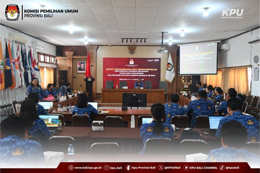 Denpasar, Bali.kpu.go.id - KPU Provinsi Bali melaksanakan Rapat Rekonsiliasi dan Pendampingan Penyusunan Laporan Keuangan Tahun 2024 (Unaudited), di Ruang Rapat Lantai 2 Kantor KPU Provinsi, Kamis s.d Jumat (16-17/1/2025). Rapat dibuka oleh Sekretaris KPU Provinsi Bali, I Made Oka Purnama yang menyampaikan "Pada tahun 2024, telah dilakukan revisi dan pengurangan pagu agar serapan mencapai 99%. Pada Tahun 2025, terdapat beberapa kegiatan evaluasi yang akan dilakukan.". Dilanjutkan dengan penyampaian materi oleh Kepala Kanwil DJPb Provinsi Bali, I Ketut Oka Widiasa yang menjelaskan materi Rekonsiliasi dan Pendampingan Penyusunan Laporan Keuangan Tahun 2024 (Unaudited). Penjelasan tersebut mengenai pengaturan jadwal rekonsiliasi eksternal sakti-span periode Desember 2024, ketentuan periodisasi, pedoman tutup periode. Dan Dwi Anggani dari Kanwil DJPb Provinsi Bali menjelaskan mengenai perpanjangan penyelesaian administratif terkait pertanggungjawaban atas pelaksanaan anggaran tahun 2024. Kemudian Arahan oleh narasumber Kepala Sub Bagian pada Biro Pengadaan Barang/Jasa dan BMN, M. Ismantri dan Arahan oleh narasumber Bagian Aklap KPU RI, Dian Nurlaily. Dilanjutkan Sesi Pendampingan Penyusunan Laporan Keuangan oleh Tim Pendampingan KPU RI. kegiatan rapat tersebut turut mengundang Sekretaris KPU Provinsi Bali, Bagian Akuntansi dan Pelaporan KPU RI, Bagian BMN KPU RI, Kepala Bagian Keuangan, Umum, dan Logistik KPU Provinsi Bali. Kepala Subbagian Keuangan KPU Provinsi Bali, Kepala Subbagian Umum KPU Provinsi Bali. Kepala Subbagian Keuangan, Umum, dan Logistik KPU Kabupaten/Kota se-Bali, Operator GL dan Pelaporan KPU Kabupaten/ Kota se-Bali, Operator Aset dan Persediaan KPU Kabupaten/ Kota se-Bali. Rapat ditutup oleh Sekretaris KPU Provins Bali, I Made Oka Purnama pada 17 Januari 2025 siang hari.(bayu.red/Foto KPU Bali/bayu/hupmas)