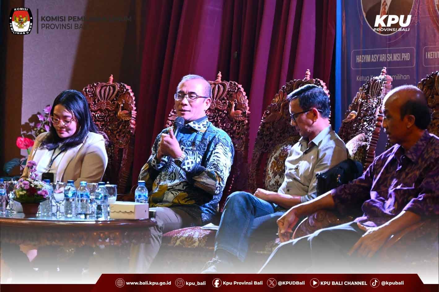 Denpasar, bali.kpu.go.id-Fakultas Hukum Universitas Mahasaraswati Denpasar sukses menyelenggarakan Seminar Nasional dengan tema "Mewujudkan Pemilu yang Demokrasi dan Bermartabat". Acara ini dilaksanakan secara hybrid di Aula Ganesha Gedung Rektorat Lantai 4 Universitas Mahasaraswati Denpasar pada hari Kamis, 14 Desember 2023. Seminar tersebut memiliki tujuan utama untuk membimbing dan mempersiapkan mahasiswa terkait Pemilu 2024, dengan menghadirkan para ahli dan praktisi di bidang hukum serta pemilihan umum. Keynote Speaker dalam acara ini adalah Hasyim Asy’ari, S.H., M.Si., Ph.D., Ketua Komisi Pemilihan Umum Republik Indonesia (KPU RI). \Para narasumber yang turut berkontribusi dalam seminar ini antara lain I Dewa Agung Gede Lidartawan, S.TP., M.P., Ketua KPU Provinsi Bali; Dr. I Dewa Gede Palguna, S.H., M.Hum., Hakim Konstitusi Mahkamah Konstitusi dan Dosen Fakultas Hukum Universitas Udayana; serta Dr. Abdul Kadir Jaelani, S.H., M.H., Dosen Fakultas Hukum Universitas Sebelas Maret. Moderator yang memandu jalannya seminar adalah Ni Wayan Dita Maharani, mahasiswa Fakultas Hukum Universitas Mahasaraswati Denpasar. Diskusi yang intens dan informatif mencakup berbagai aspek terkait pemilu, demokrasi, serta nilai-nilai bermartabat dalam konteks pemilihan umum. Seminar nasional ini menjadi momentum penting dalam mempersiapkan mahasiswa menghadapi Pemilu 2024, menggali wawasan dari para ahli di bidangnya, dan menjadikan demokrasi sebagai fondasi kuat bagi kemajuan bangsa. Universitas Mahasaraswati Denpasar berharap bahwa kegiatan ini dapat memberikan kontribusi positif bagi pemahaman mahasiswa tentang pentingnya partisipasi dalam proses demokrasi serta meningkatkan kualitas Pemilu yang demokratis dan bermartabat. ps.red/Foto KPU Bali/ps/hupmas)