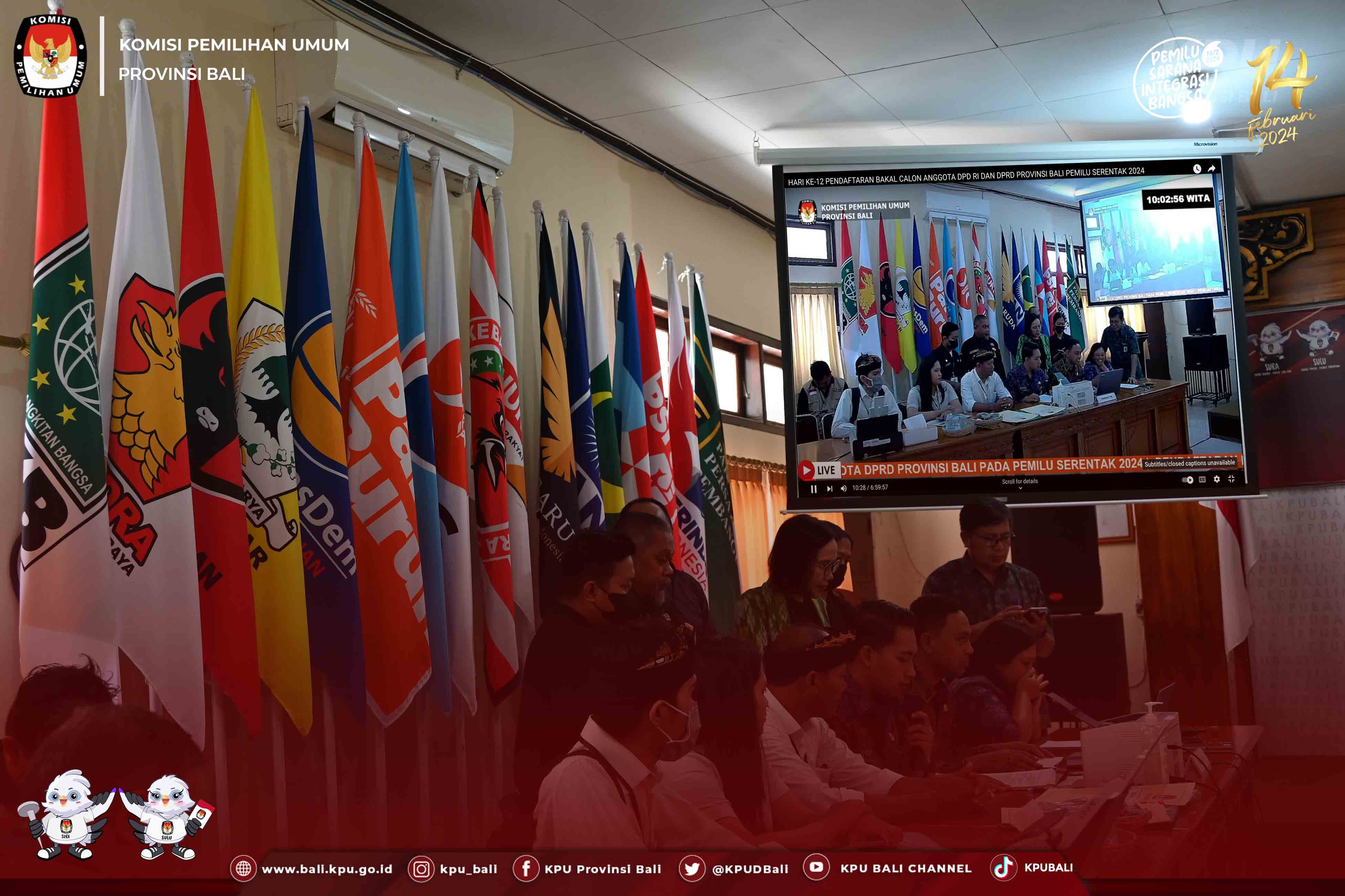 Denpasar, bali.kpu.go.id - Memasuki Hari Ke 12 pengajuan Pendaftaran Bakal Calon Anggota DPD RI dan Daftar Bakal Calon Anggota DPRD Provinsi Bali oleh Partai Politik Pada Pemilu Serentak 2024, Hari ini Jumat (12/5/2023) KPU Bali Menerima dua Pendaftaran Bakal Calon Anggota DPD dan dua pengajuan pendaftaran daftar Bakal Calon Anggota DPRD Provinsi Bali. Bertempat Di Ruang Rapat KPU Bali. Diawali dengan Pengajuan pendaftaran Bakal Calon Anggota DPD RI Ida Bagus Rai Dharmawijaya Mantra pada Pukul 09.34 Wita. Pendaftaran bakal calon diserahkan langsung oleh Bakal Calon DPD RI. Disusul Partai Hanura mengajukan pendaftaran bakal calon Anggota DPRD Bali pada pukul 09.32 Wita Pada pukul 15.23 Pengajuan pendaftaran Bakal Calon Anggota DPD RI atas nama Bambang Santoso, yang dilanjutkan pengajuan pendaftaran oleh Partai Amanat Nasional pukul 16.35 Wita mengajukan pendaftaran bakal calon anggota DPRD Provinsi Bali Untuk Pemilu Serentak 2024 Setelah melalui proses penerimaan dan pemeriksaan kelengkapan dokumen syarat pencalonan dan keberadaan dokumen syarat administrasi bakal calon yang dilakukan oleh Tim admin dan operator Silon KPU Bali dinyatakan pemeriksaan untuk dua Bakal Calon Anggota DPD dan Pengajuan Bakal Calon Anggota DPRD Provinsi Bali dari masing - masing Pertai politik dengan status Diterima. Pengajuan pendaftaran di terima oleh Anggota KPU Bali Divisi Teknis Penyelenggaraan, Luh Putu Sri Widyastini dan didampingi oleh Anggota KPU, Anak Agung Raka Nakula, I Gede John Darmawan, dan I Gusti Ngurah Agus Darmasanjaya serta dengan disaksikan oleh Bawaslu Bali, anggota kelompok kerja pencalonan serta instansi terkait. (ps.red/Foto KPU Bali/ps/hupmas)