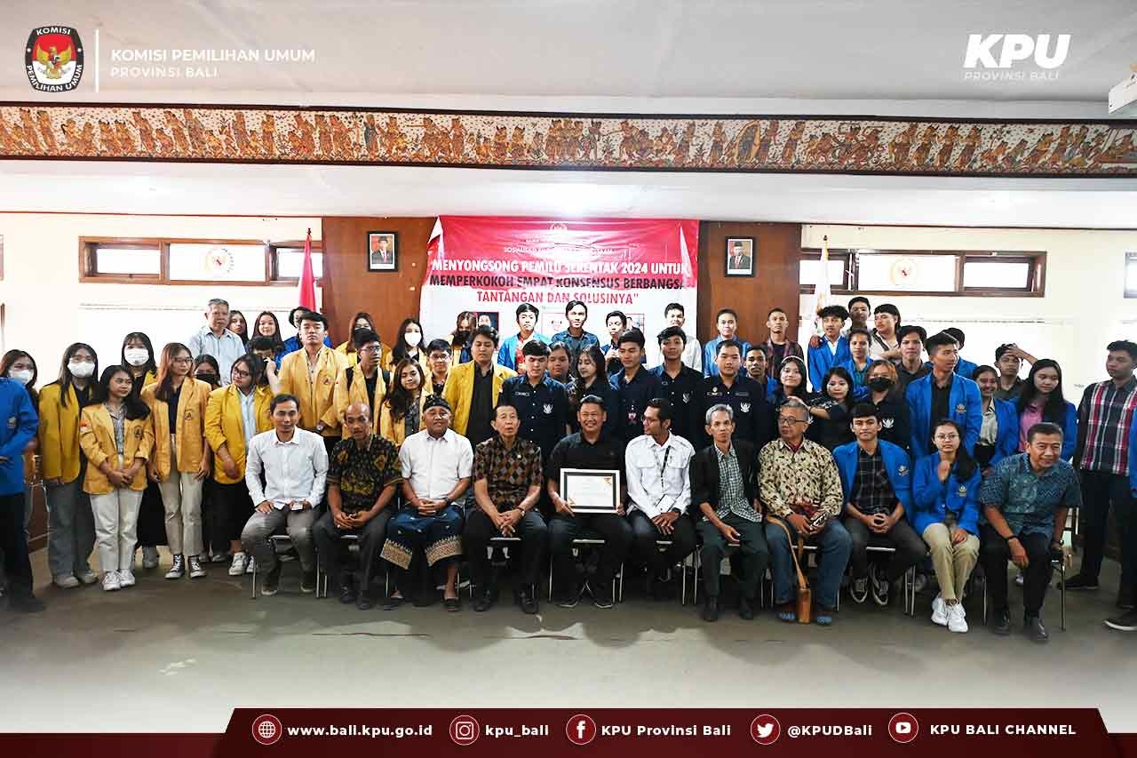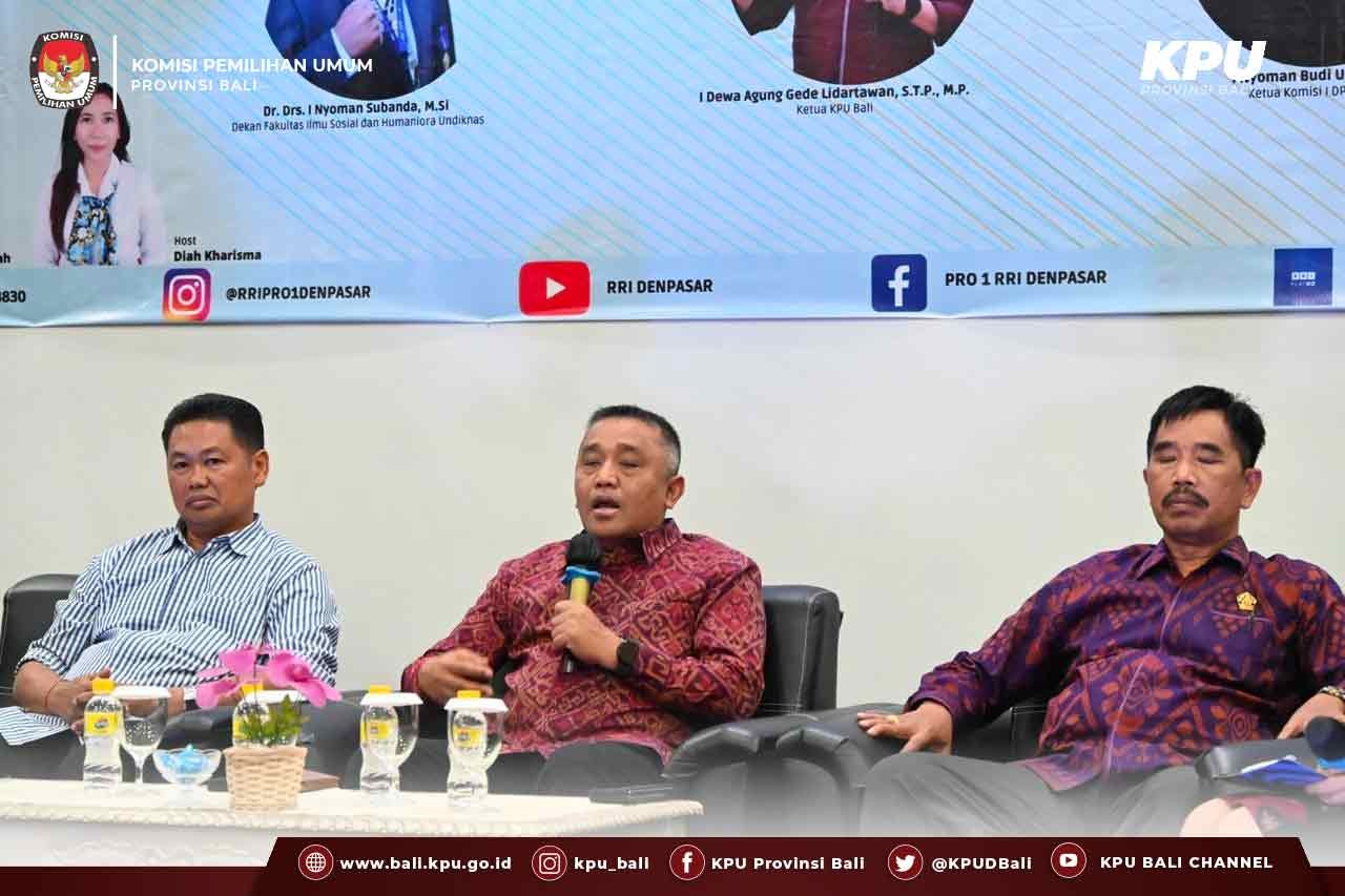 Denpasar, bali.kpu.go.id - Dalam acara Parlemen Menjawab RRI Denpasar yang diselenggarakan di Hotel Vasinini yang disiarkan secara langsung melalui channel Youtube RRI, Ketua KPU Bali, I Dewa Agung Gede Lidartawan, menyampaikan pesan penting kepada masyarakat Milenial. Dalam tema "Pemilih Cerdas Pemilih Berkualitas", Agung Lidartawan menekankan pentingnya partisipasi aktif dalam proses pemilihan dan mengingatkan bahwa politik seharusnya digunakan sebagai alat untuk mensejahterakan rakyat. Dia juga menggarisbawahi perlunya persiapan yang matang untuk Pemilu 2024 yang akan menjadi pemilihan pertama di Indonesia dengan pemilu serentak dua kali dalam satu tahun. Agung Lidartawan juga mengajak pemilih milenial, terutama mahasiswa dan siswa SMA, untuk berperan aktif dalam proses demokrasi. Selasa (6/6/2023) Agung Lidartawan yang hadir sebagai narasumber menyampaikan dalam upaya meningkatkan efektivitas komunikasi dan sosialisasi mengenai pemilihan, KPU Bali telah melibatkan Relawan Demokrasi. Relawan Demokrasi adalah kelompok sukarelawan yang terdiri dari berbagai latar belakang dan segmen masyarakat. Mereka bertugas menyebarkan informasi dan meningkatkan pemahaman tentang pentingnya partisipasi dalam pemilihan. Melalui pendekatan yang tepat dan menggunakan berbagai metode komunikasi seperti sosial media, diskusi kelompok, dan kampanye langsung, Relawan Demokrasi berupaya meningkatkan kesadaran dan minat pemilih potensial, terutama pemilih muda, untuk memahami peran mereka dalam membangun masa depan negara melalui pemilihan yang berkualitas. Dalam kesempatan tersebut, para peserta, khususnya pemilih milenial, diberikan kesempatan untuk berdialog dan mengajukan pertanyaan kepada narasumber yang meliputi isu-isu penting dalam politik dan pemilihan. Diskusi yang berlangsung menekankan pentingnya pemahaman politik yang baik dan peningkatan kualitas pemilih dalam mewujudkan demokrasi yang berkualitas dan berkeadilan. Narasumber lain yang hadir adalah Ketua Komisi I DPRD Bali, Budi Utama, SH, dan Dr. Subanda, seorang akademisi dan dosen Ilmu Sosial dan Humaniora dari Universitas Pendidikan Nasional. (ps.red/Foto KPU Bali/ps/hupmas)