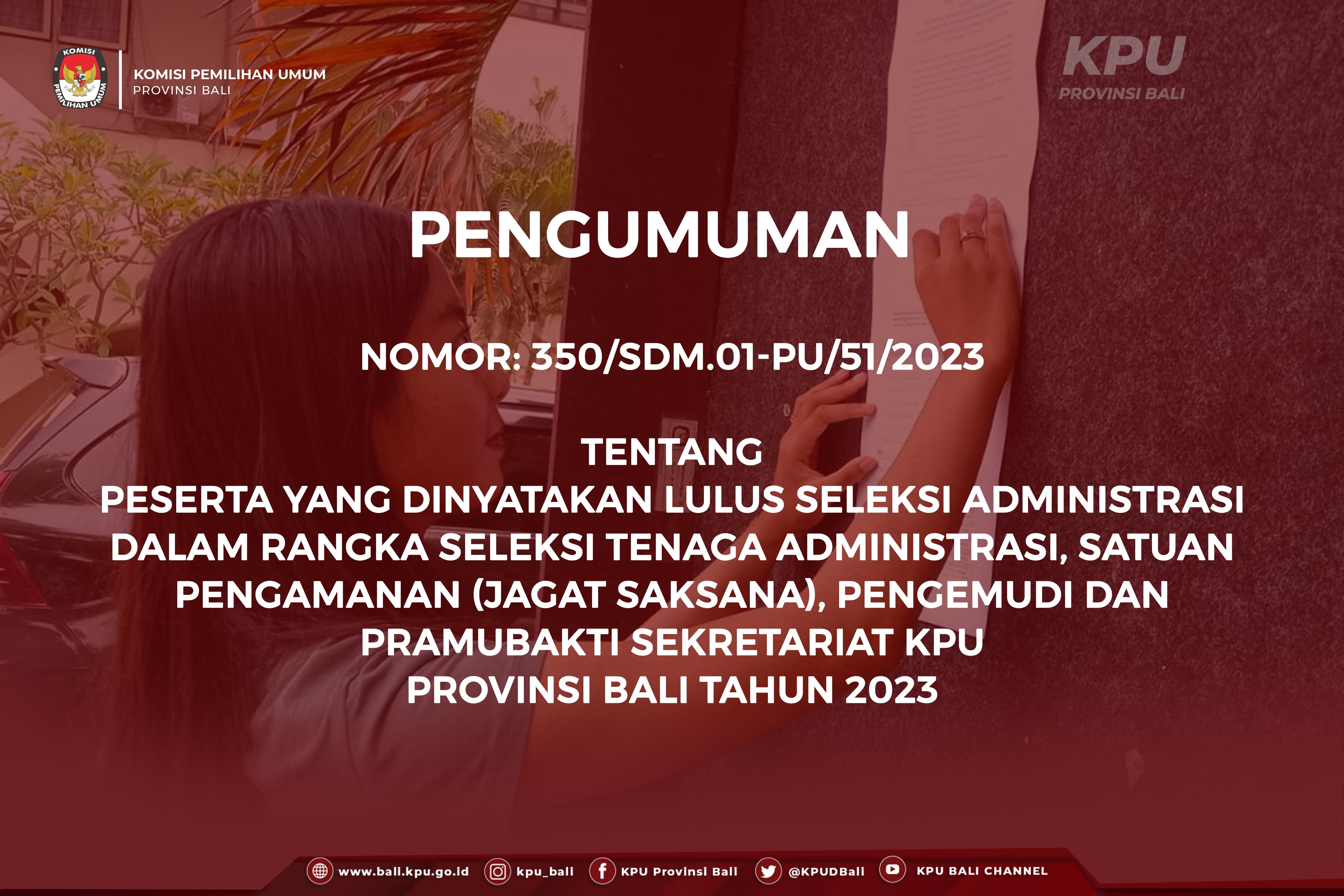 PENGUMUMAN NOMOR: 350/SDM.01-Pu/51/2023 TENTANG PESERTA YANG DINYATAKAN LULUS SELEKSI ADMINISTRASI