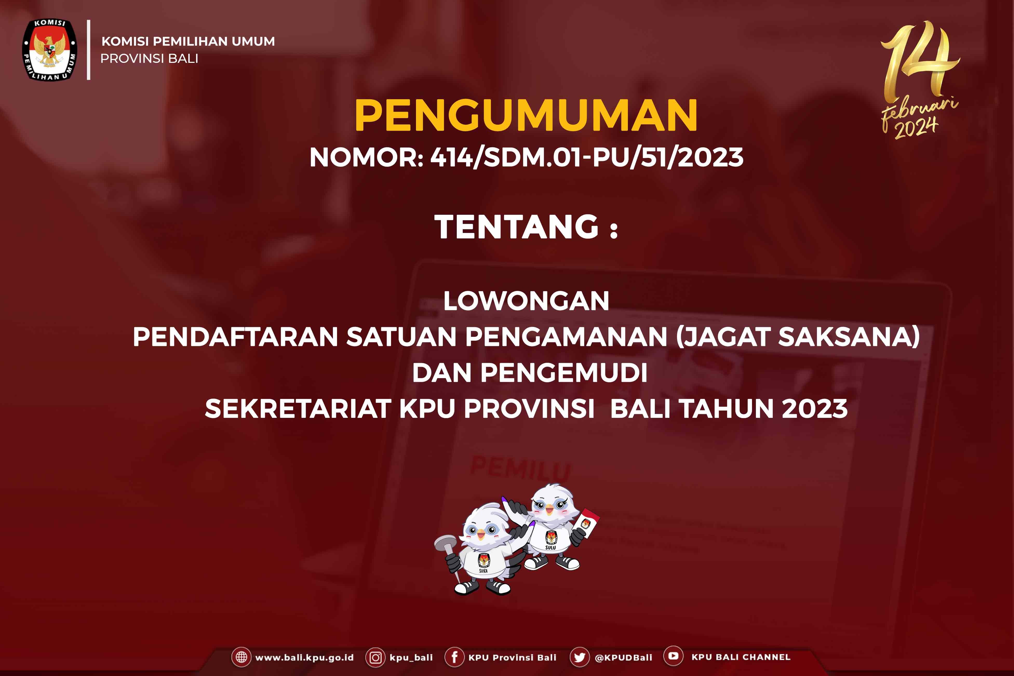 DALAM RANGKA SELEKSI TENAGA ADMINISTRASI, SATUAN PENGAMANAN (JAGAT SAKSANA), PENGEMUDI DAN PRAMUBAKTI SEKRETARIAT KPU