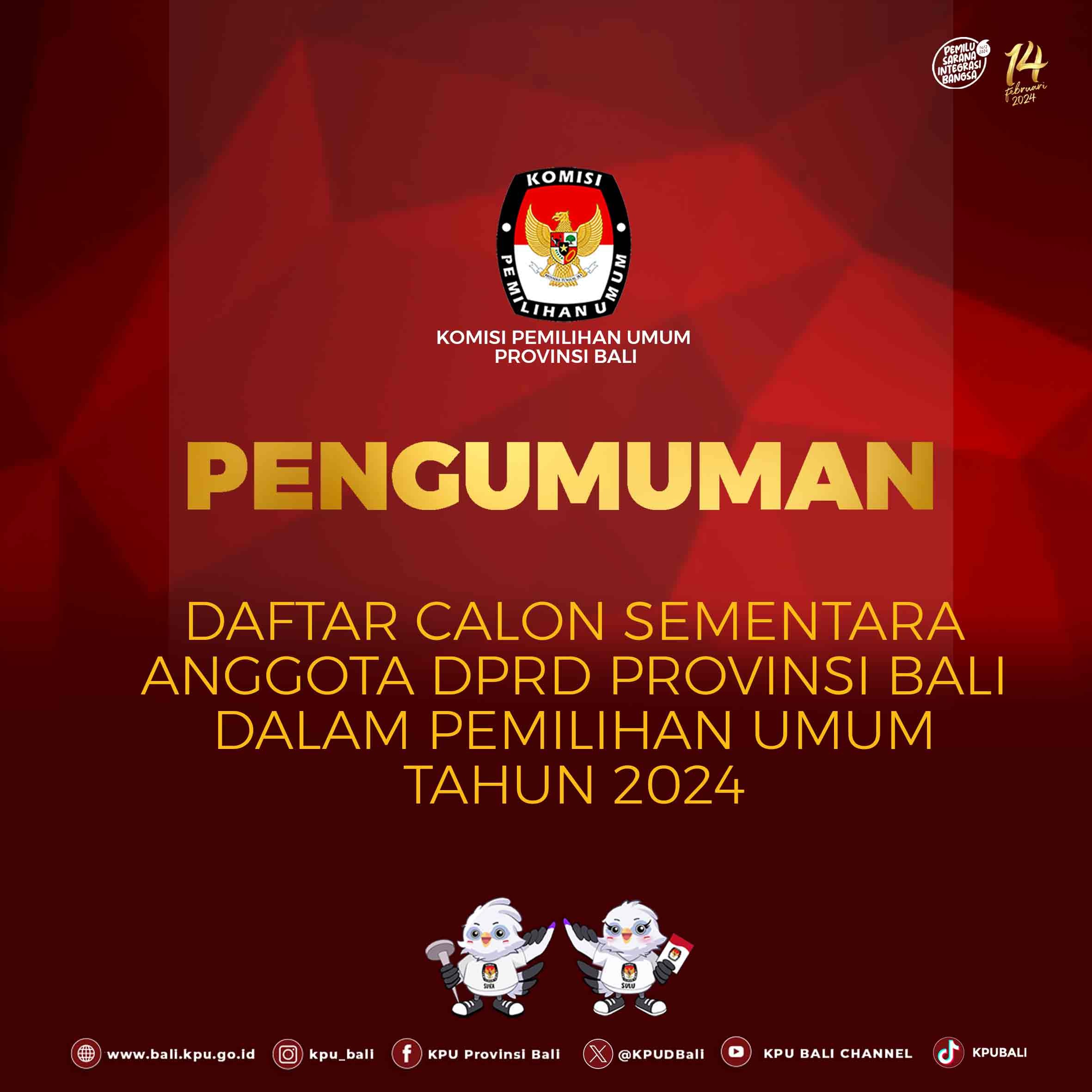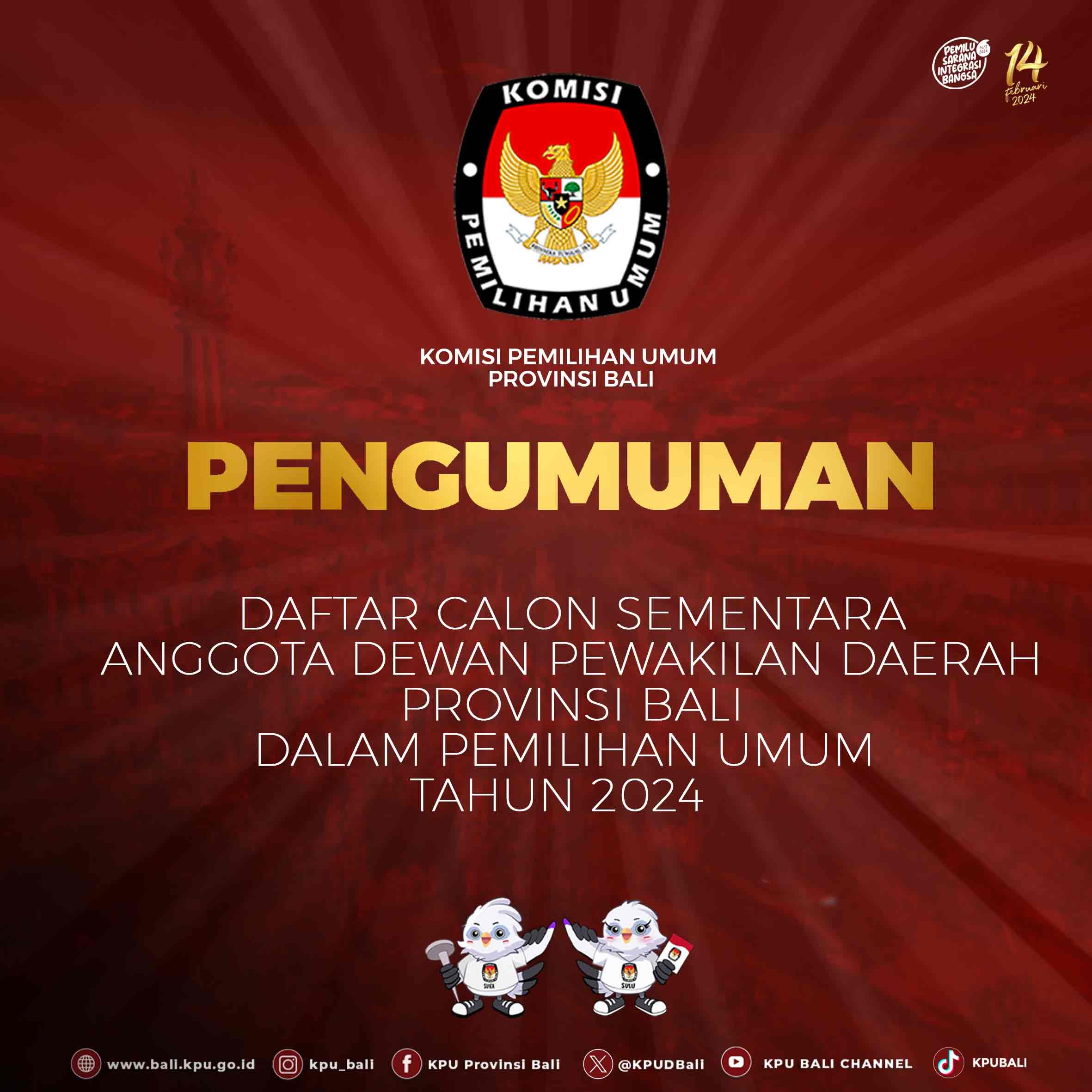 Untuk lebih lengkapnya dapat dibuka pada link berikut ini : PENGUMUMAN DCS DPRD BALI