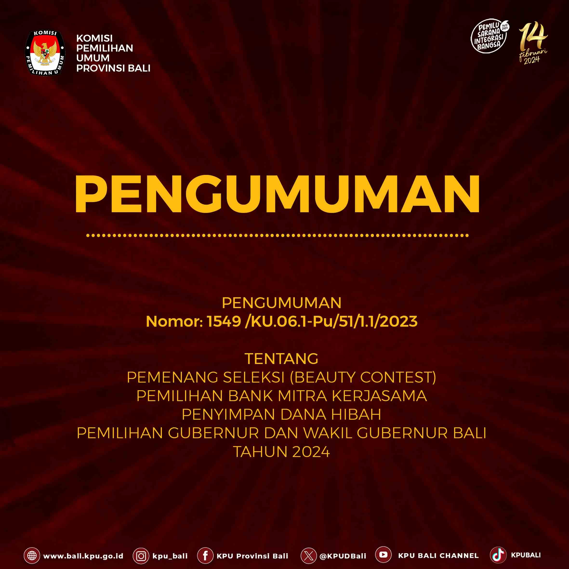 3. Informasi lebih lanjut dapat menghubungi helpdesk pencalonan KPU Provinsi BALI